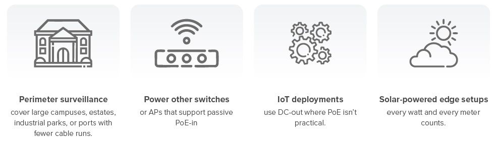 3 выхода постоянного тока для устройств, не использующих PoE, например, для устройств Интернета вещей