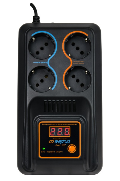 и другого оборудования небольшой мощности. Особенностью данного стабилизатора является совмещение функций стабилизатора и сетевого фильтра.